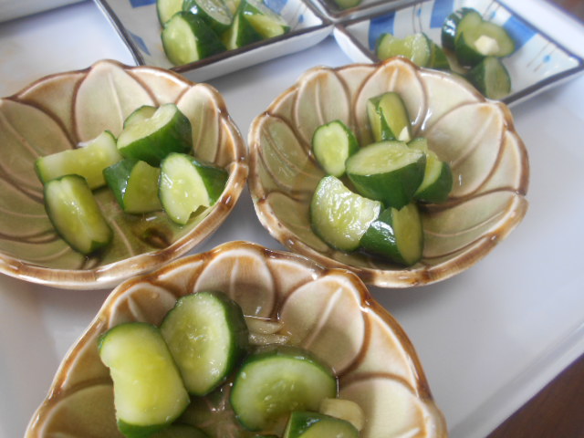 乱切りにしたきゅうりと一緒にもみもみ。