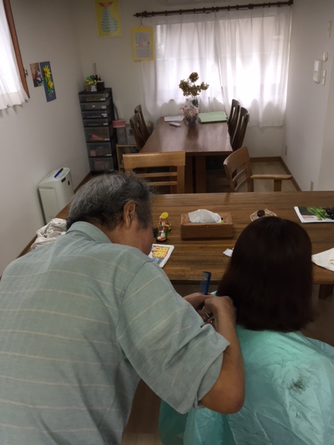 長年散髪屋をされていた男性ご利用者様が職員のカットをして下さいました