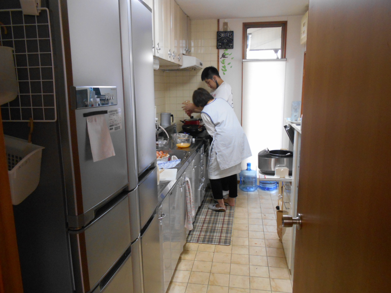 大きな2人なので、キッチンがいつもより狭く感じます笑