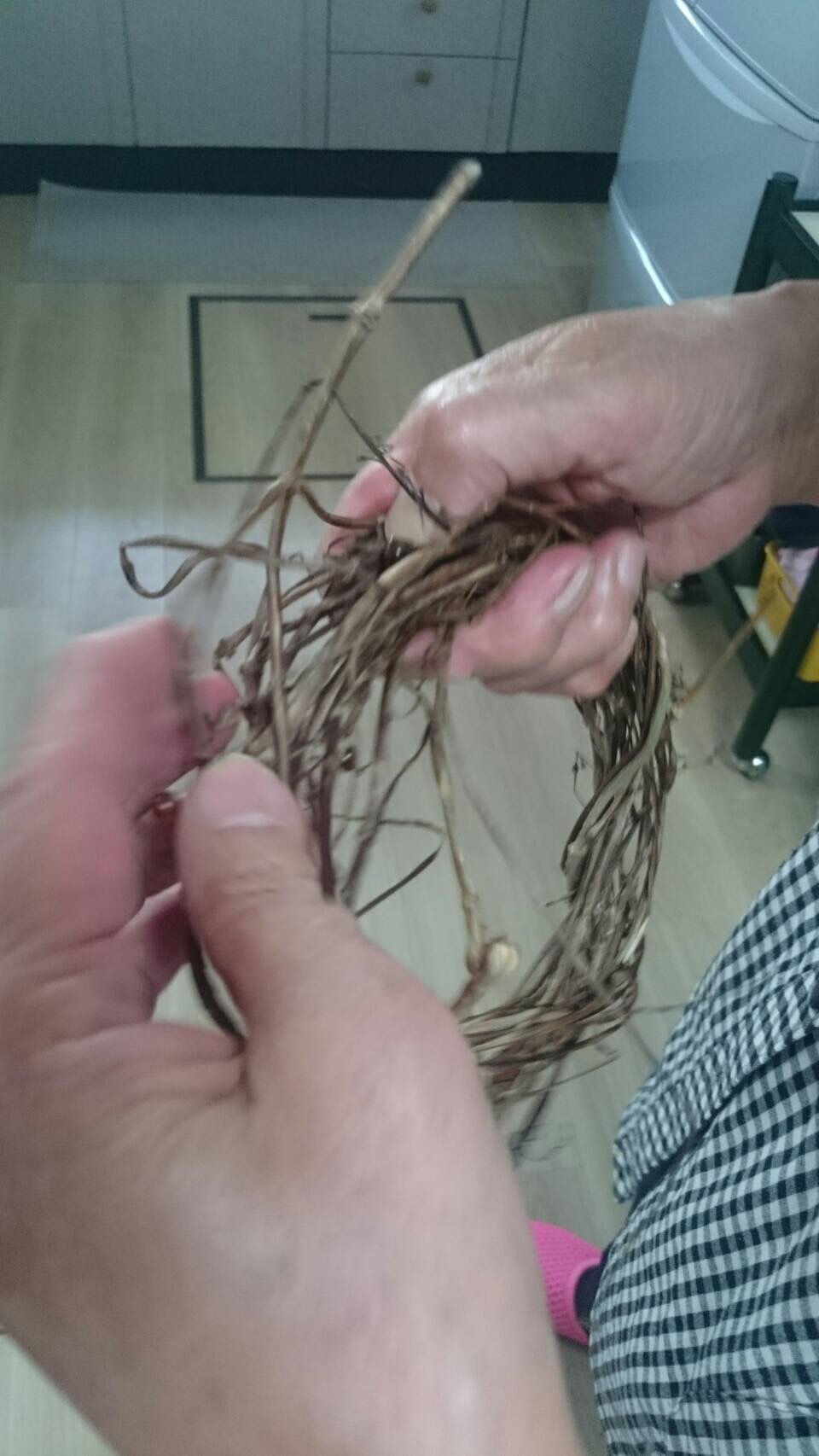 枝をリースの形に整えていきます![]()
