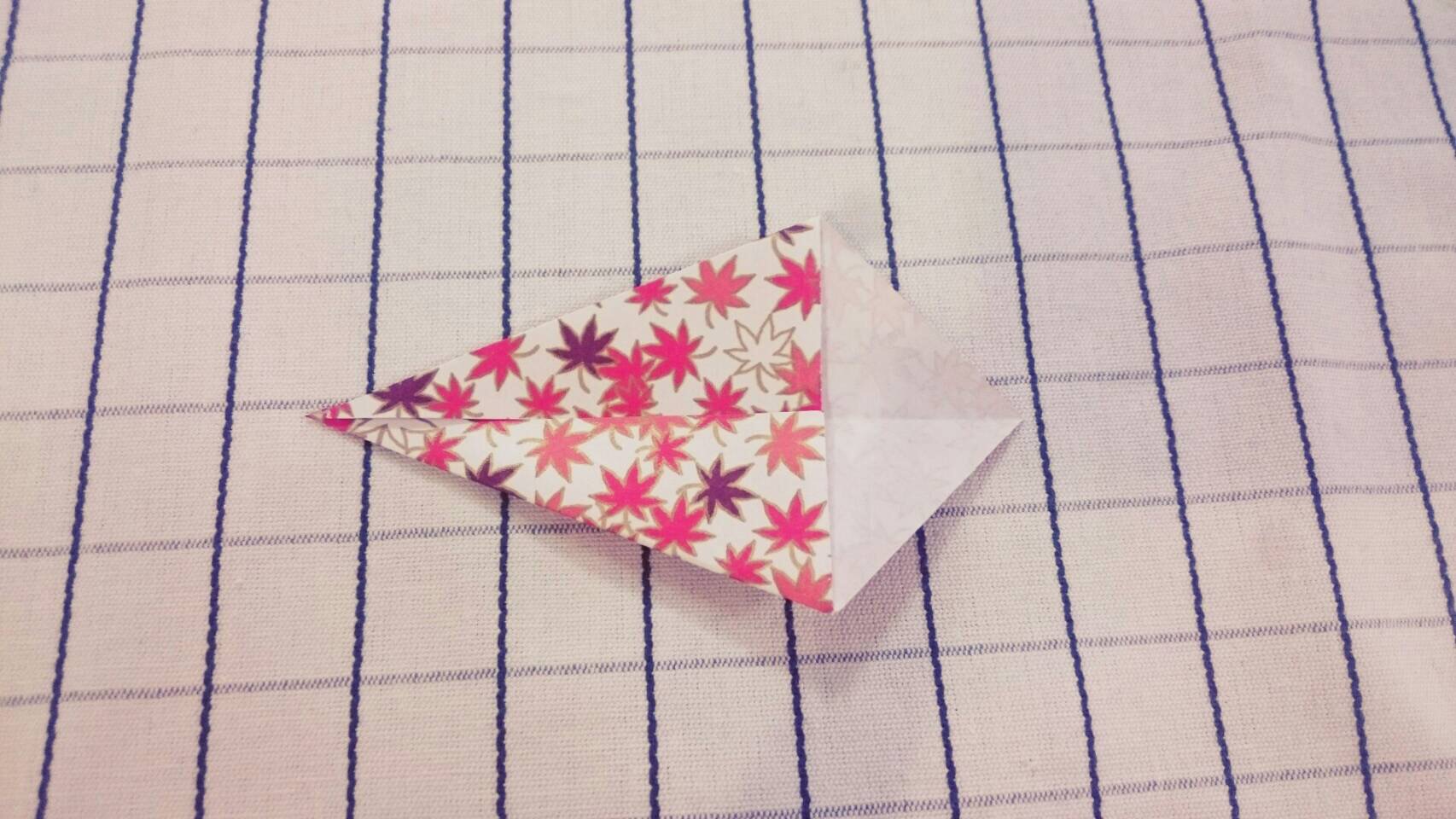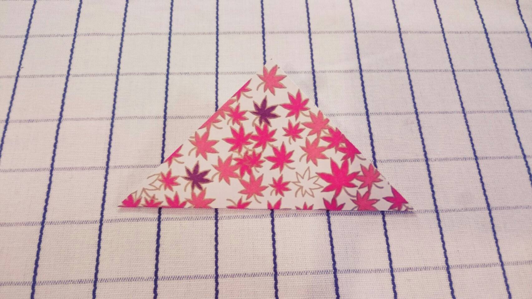 ①三角形を作るように半分に折ります。