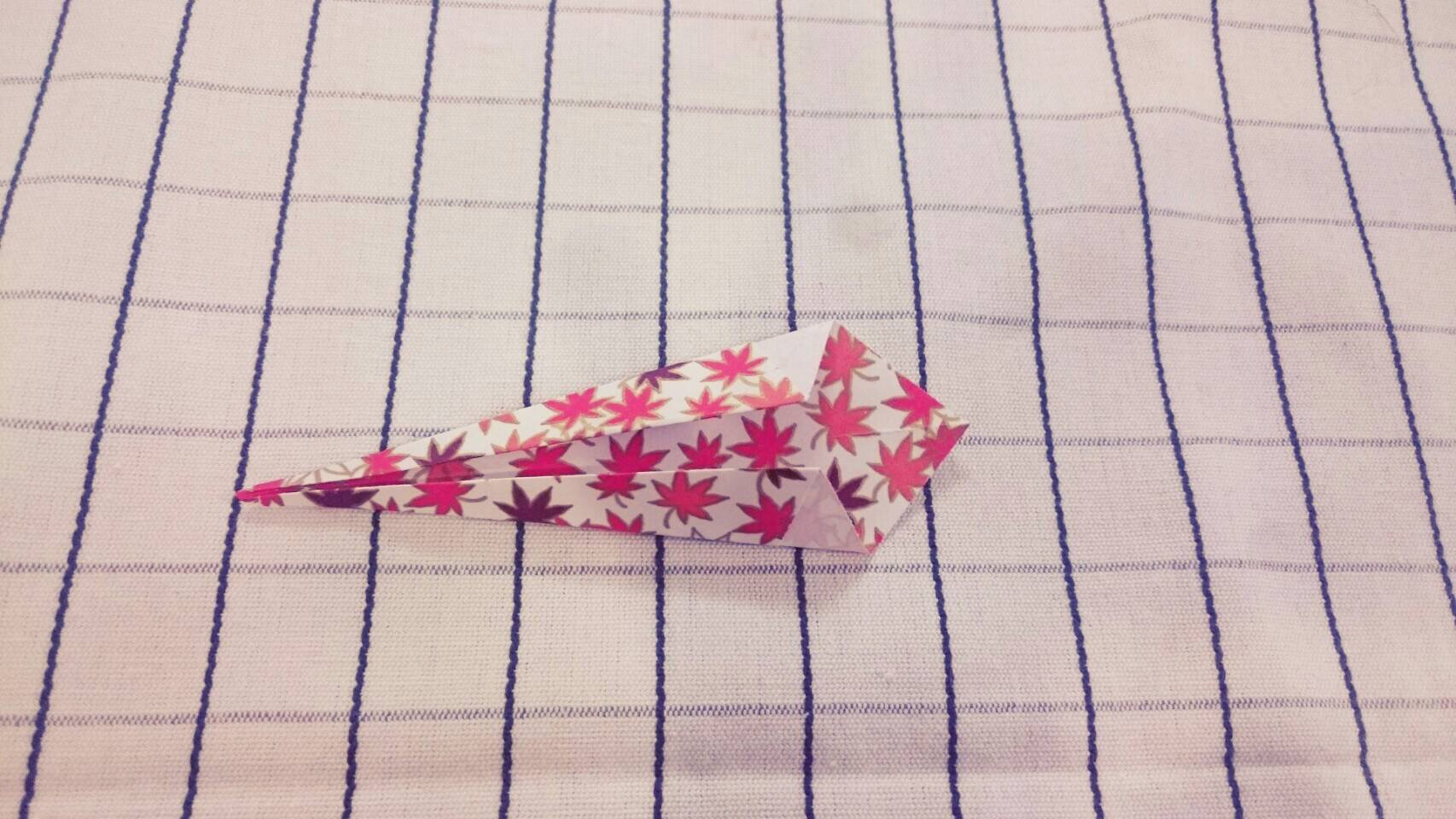 ③裏返し、もう一度中心の折り線に合わせて折ります。