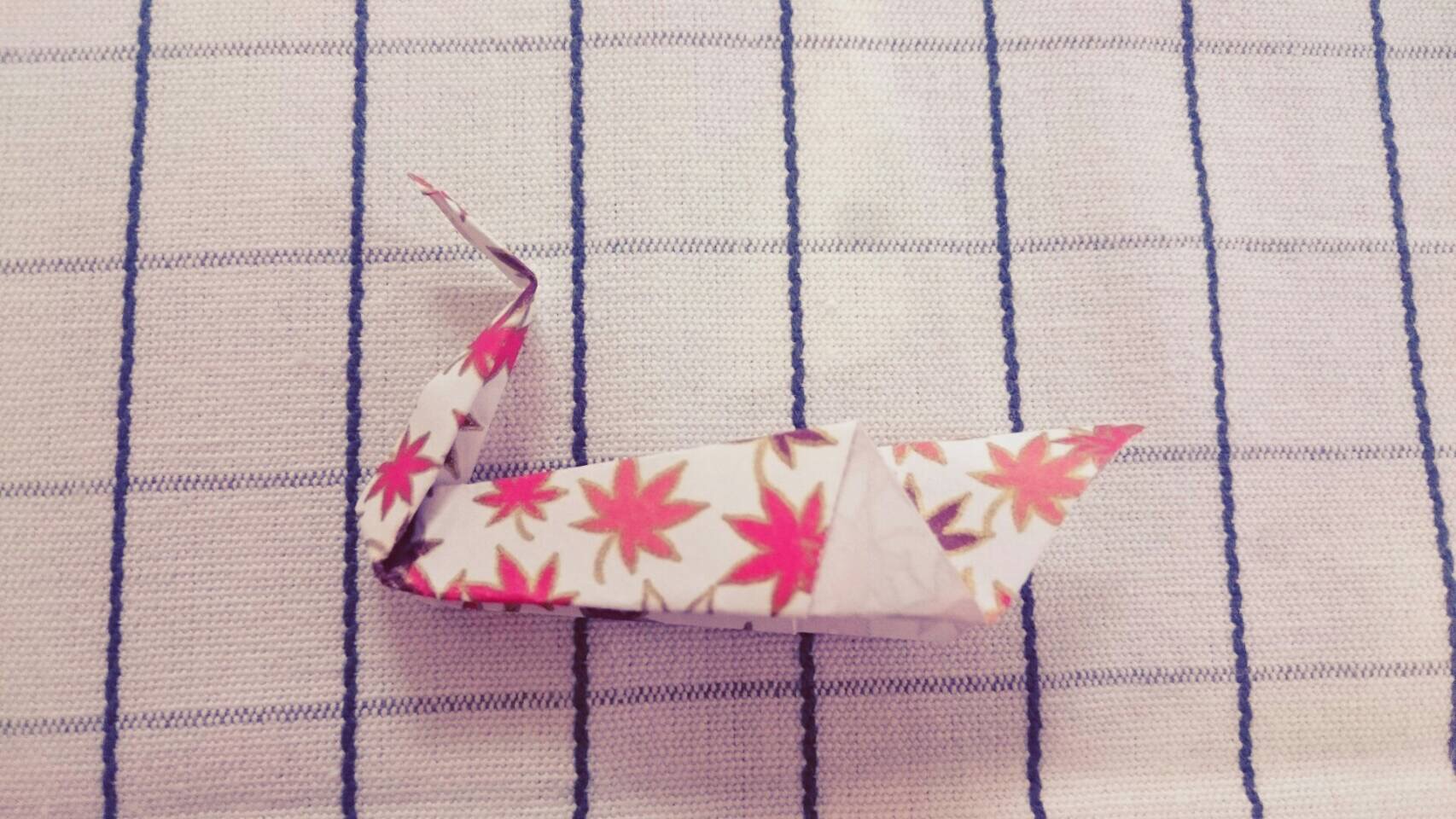 ⑤一般的な鶴の折り方と同じように、中折りにし、
