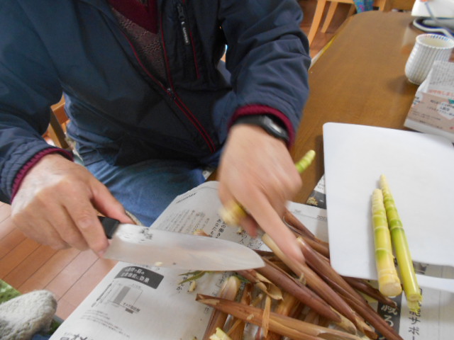 今朝、ご利用者さんの庭に筍がはえていたのを頂きました。