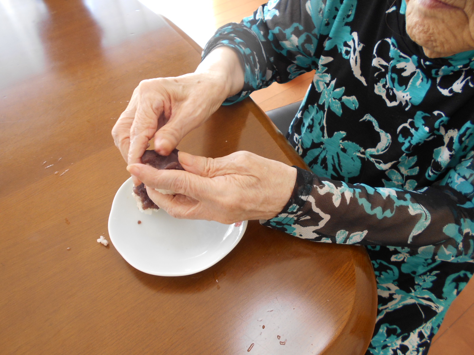 おやつに「おはぎ」をみなさんと一緒に作りました。