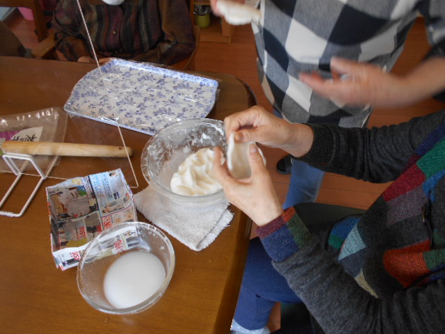 「うまいことできへんわぁ」と言いながらも器用に形を整えてくれてます。