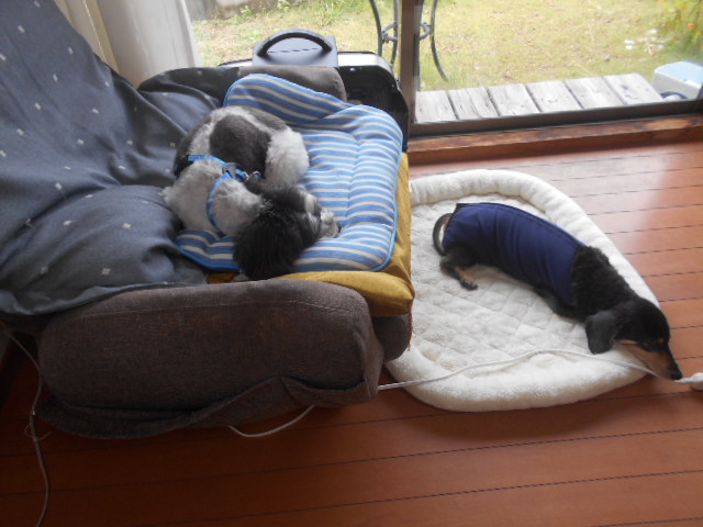 ポコとサスケは並んでお昼寝、気持ちよさそう。