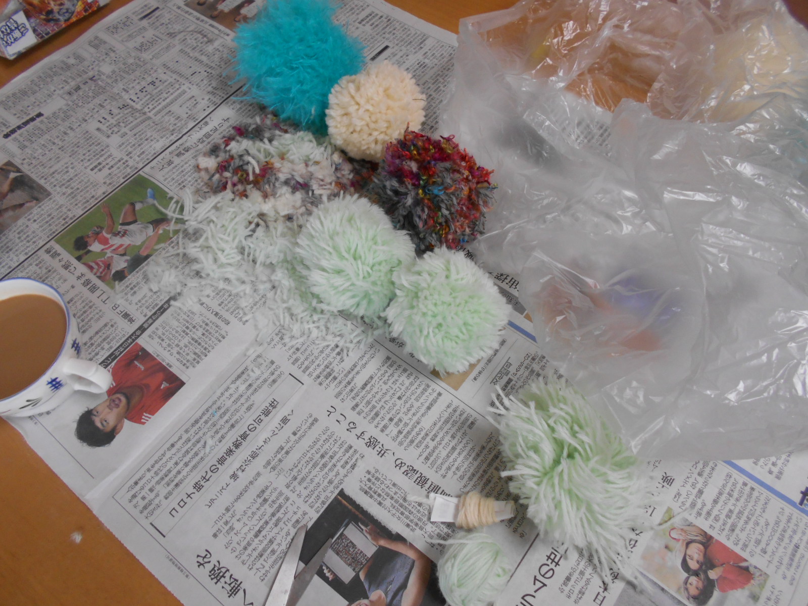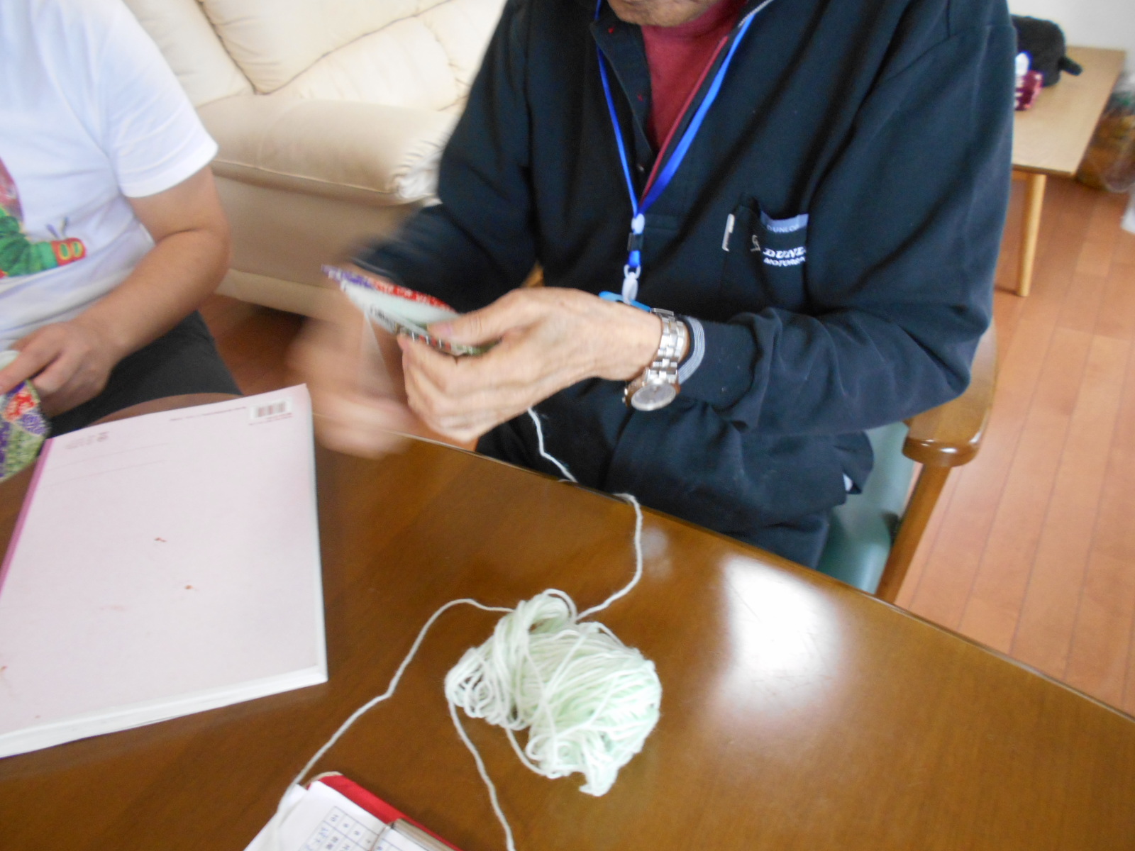 失敗して絡まった毛糸はほどいてくださいよ~と、2人がかり。