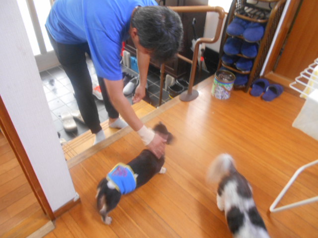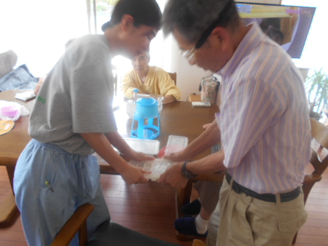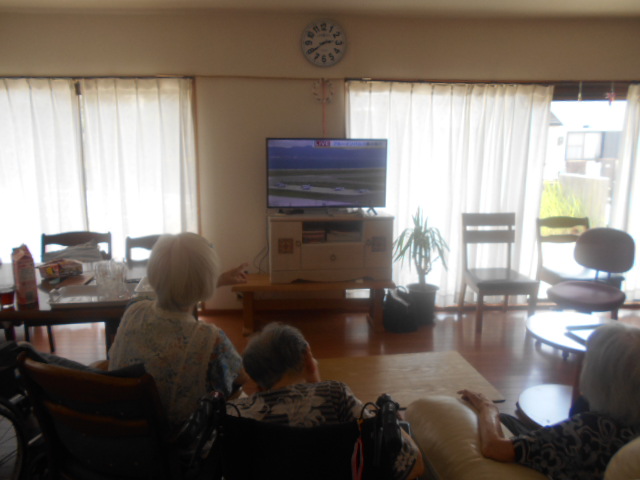 待機組はエアコンの効いたリビングでソファに並んでテレビ。