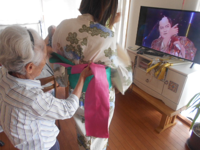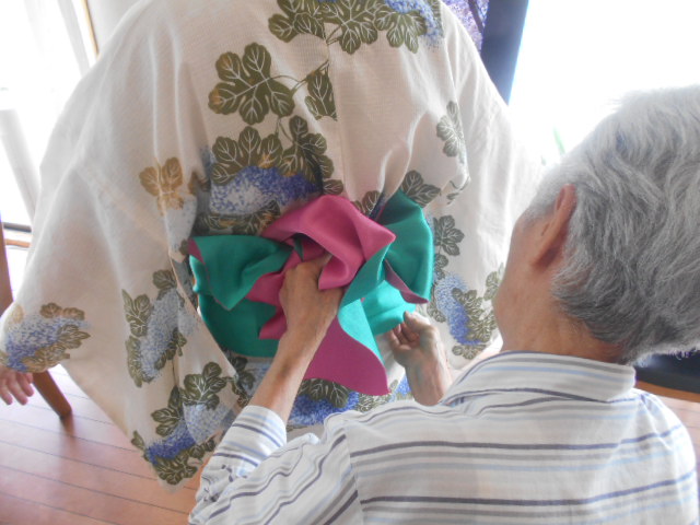 子どもの頃、姉妹でお互いの浴衣を着付けして覚えたんだって。