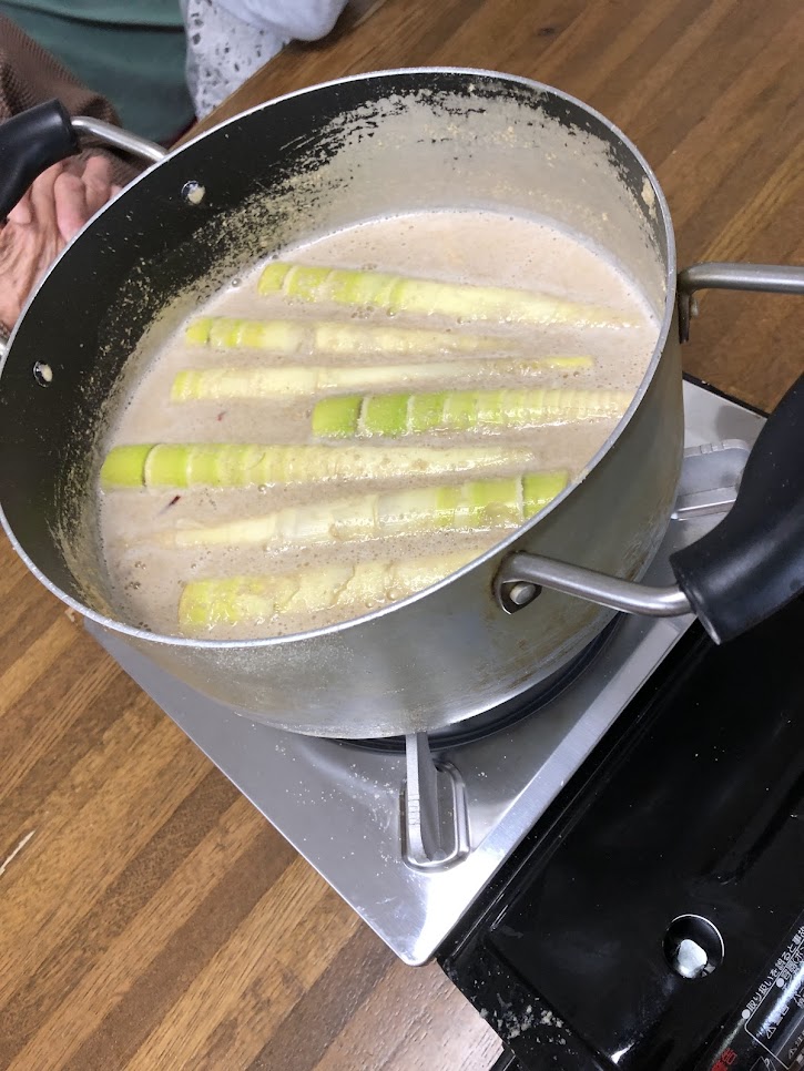 糠を入れて弱火でコトコトと